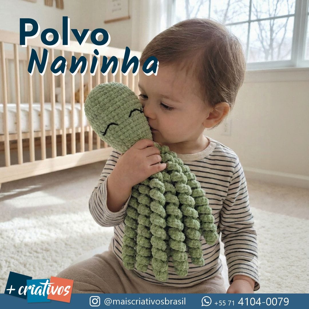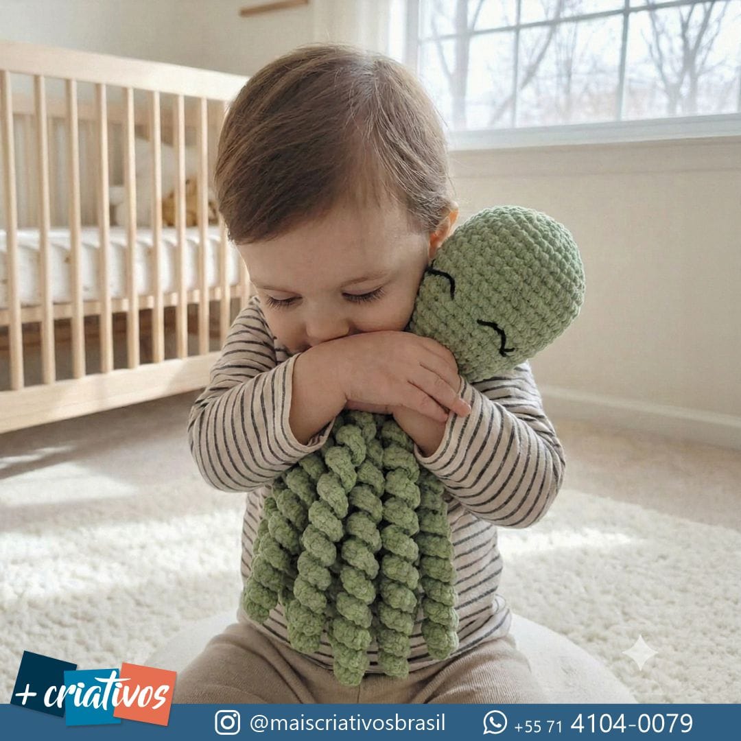 Polvo Naninha Amigurumi – O Abraço que Acalma 🐙💚