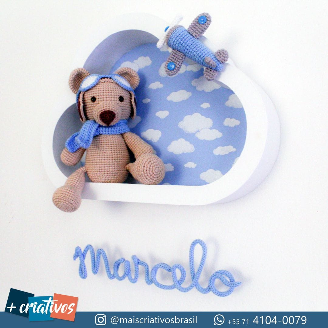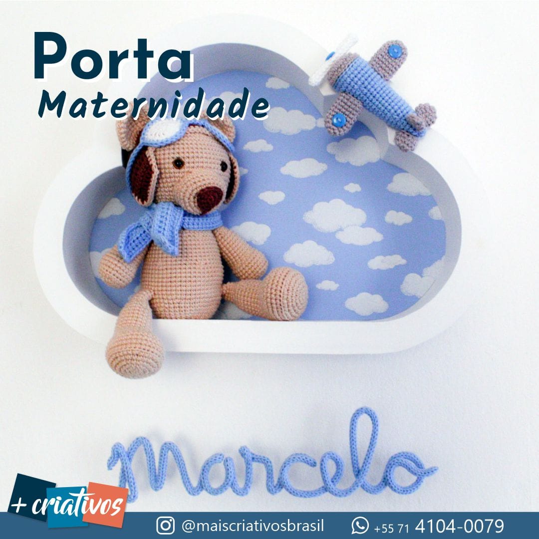 Porta Maternidade Nuvem – Ursinho Aviador (Amigurumi e Tricotin)