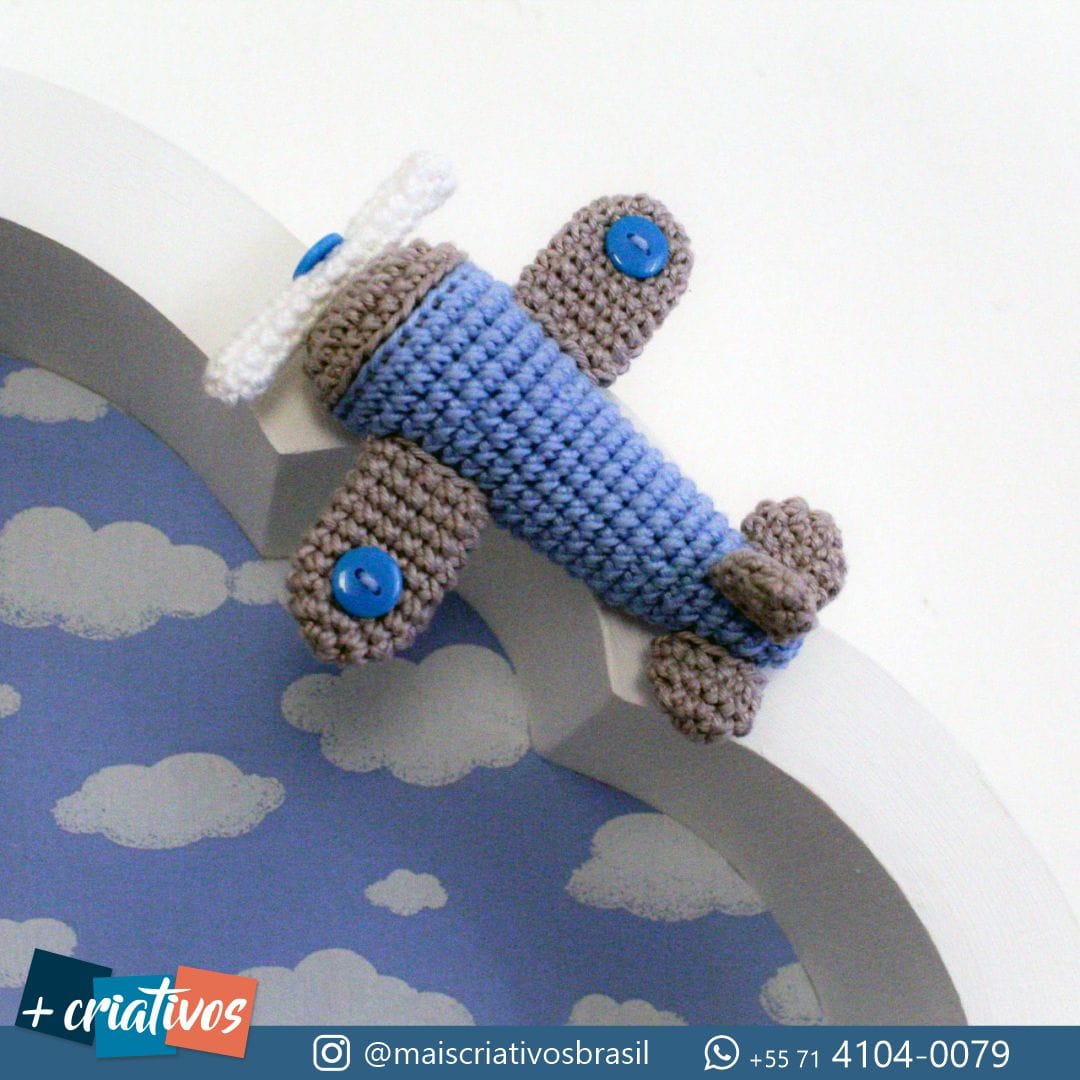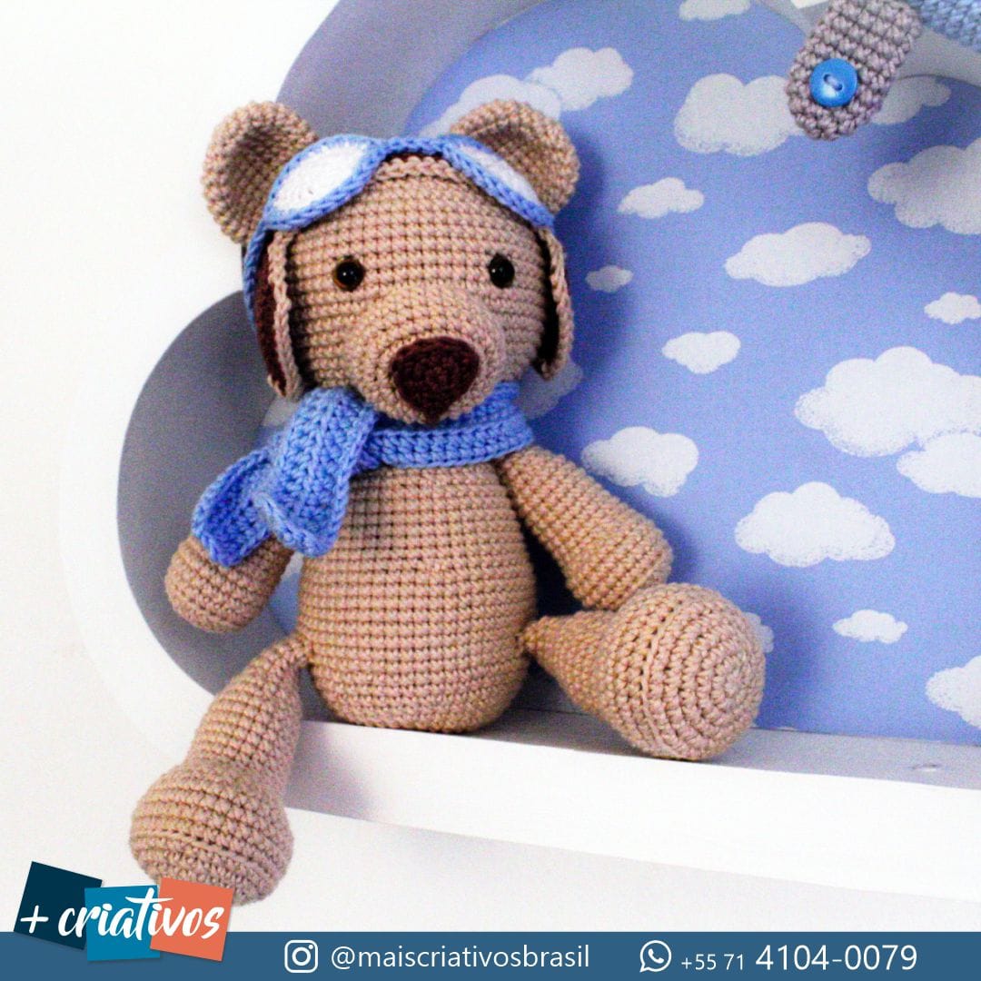• Feito à Mão com Amor: O ursinho e o avião são confeccionados na técnica Amigurumi (crochê), ricos em detalhes como o chapéu de aviador, os óculos, o cachecol e os botões nas rodas do avião.